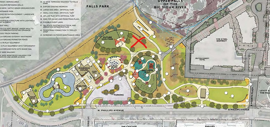 Downtown Rotary raised funds for the inclusive playground that is part of the new Jacobson Plaza at The Falls. Now it's time to celebrate the successful Rotary Way campaign and the opening of the playground! A short ceremony will be held at Jacobson Plaza at The Falls just to the north of the Levitt Shell on Monday, August 25th at 4:00 pm. Following the ceremony, Rotarians will be invited to enjoy a social time at The Lodge. Each Downtown Rotarian in attendance will receive one complimentary drink ticket. Please review this map to see the exact location of the ceremony and nearby parking. The red X" indicates the location of the ceremony. Greeters will also help direct attendees to the exact location.